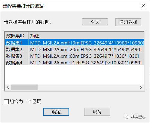选择数据集1(10m分辨率),确定之后,显示如下所示: