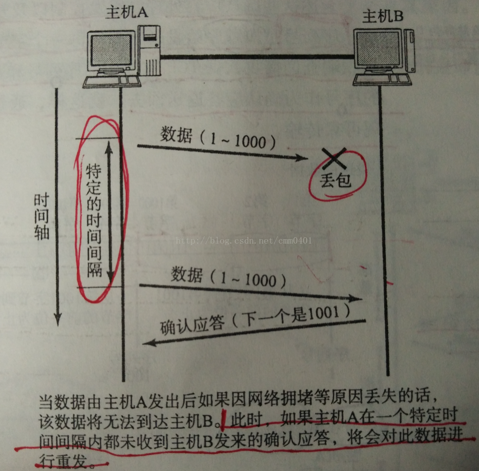 (2)那这个特定的时间间隔如何确定呢? TCP为了保证在任何网络下都能够提供比较高的传输性能,并且在任何网络下都能够保持住这一特性,它在每次发包时都会计算往返时间及其偏差,将这个“往返时间+偏差”,重发超时就是比这个总和值要稍大一点的值。