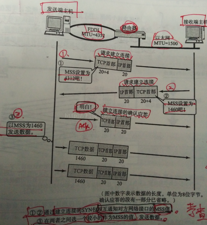 (2)TCP在传送大量数据的时候,是以“段=MSS的大小”将数据进行分割发送的,进行重发时也是以MSS为单位的。