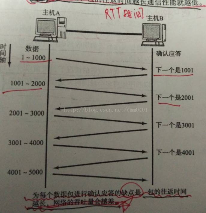 (1)如图6 所示:TCP是以一个段为单位进行数据的传输的,每发送一个段,就会等待对端主机的针对这个段的确认应答信号ACK,但这样的传输方式的缺点也很明显,就是:当数据包的往返时间越长,通信性能越低。