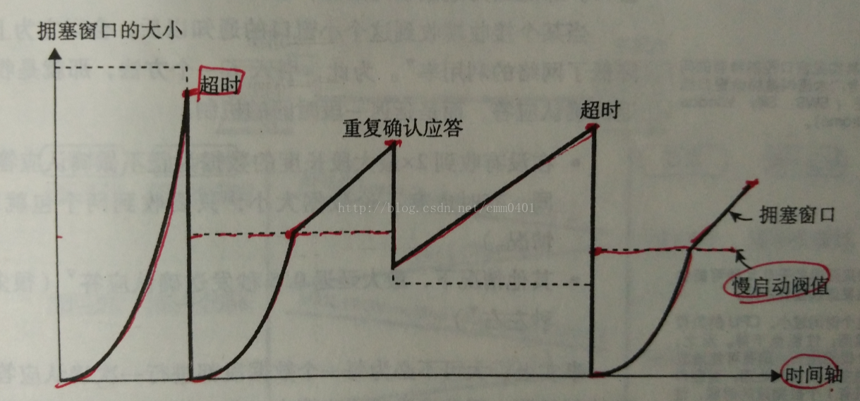 而由重复确认应答进行高速重发控制时,慢启动阈值的大小被设置为当时窗口大小的一半,然后将窗口大小设置为该慢启动阈值+3个MSS的大小。