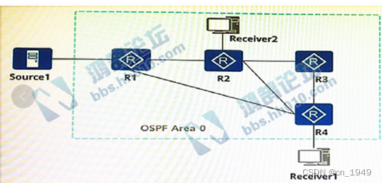 多选题543、如图所示的PIM-SM组播网络,R3为RP,所有路由器运行OSPF,且每条链路的Cost值相等,R2和R4配置了永远不发起SPT切换,则Receiverl和Receiver2接收组播数据流的稳定路径分别是以下哪项?