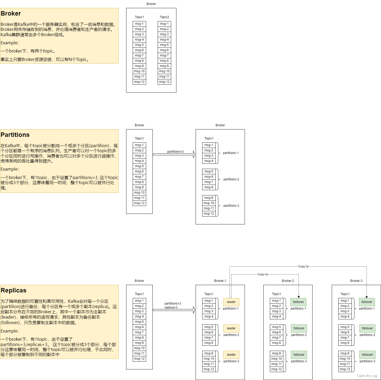 总的来说,Broker是Kafka的基本组成单位,其中存储了topic的数据,每个topic又被分成一个或多个分区,为了使数据不丢失,每个分区会在不同的Broker上保存副本,这就是数据的复制机制。