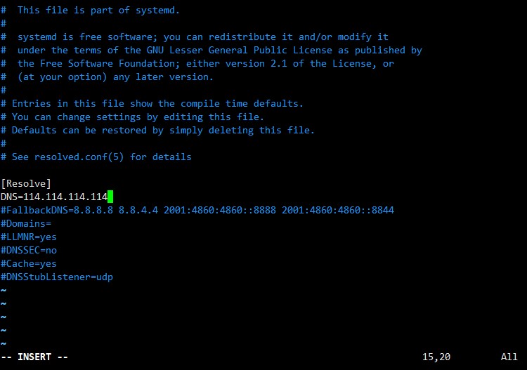 解决linux 连接网络但不能上网问题 最近配置linux服务器时,发现已经连接网络了,但是不能访问网络,ping也不通如图显示已经连接网络,且IP已经得到,但ping不通解决方法:一、输入vim /etc/resolv.conf 二,修改nameserver按 i 切换到编辑模式改成 nameserver 1.1.1.1为114.114.114.114按ESC 输入:wq 保存文件三、修改DNS的问题# 取消DNS行注释,并增加DNS配置如:114.114.1...