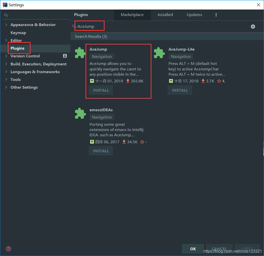 插件下载地址:http://plugins.jetbrains.com/plugin/7086-acejump/