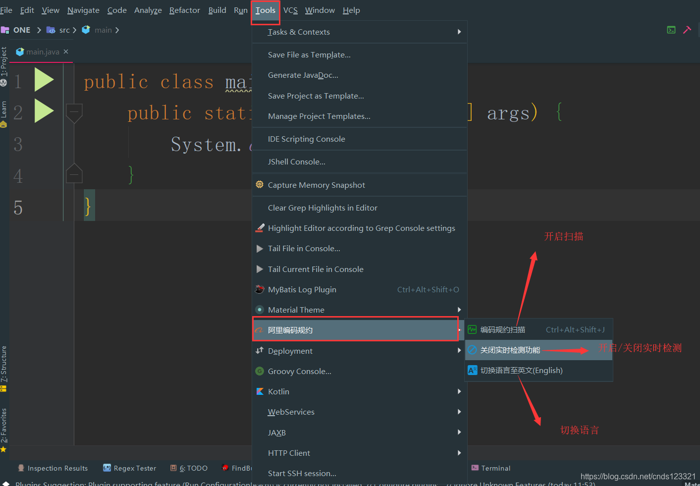 本文介绍一款代码扫描工具,能有效检测代码中的潜在问题。提供两种安装方式:通过IDEA下载插件或使用离线插件安装。插件安装链接为:https://plugins.jetbrains.com/plugin/10046-alibaba-java-coding-guidelines/。使用时,只需打开扫描功能即可查看到详细的代码问题提示。