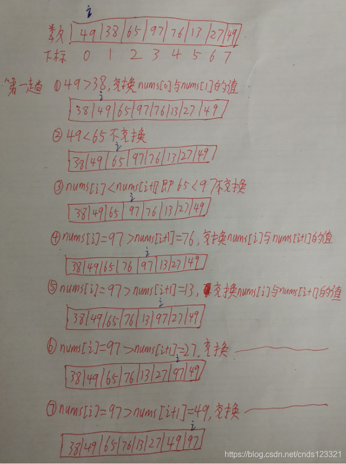 int temp=nums[i];// 如果nums[i]>nums[i+1]则交换两个元素的值