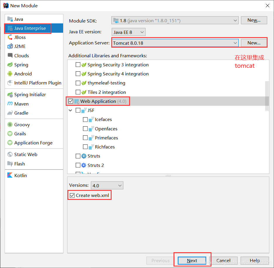 然后点击“Next”创建web项目