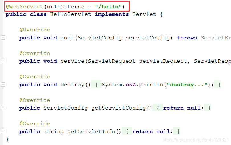 - (3)实现接口中的抽象方法,主要是在service()方法中输出。