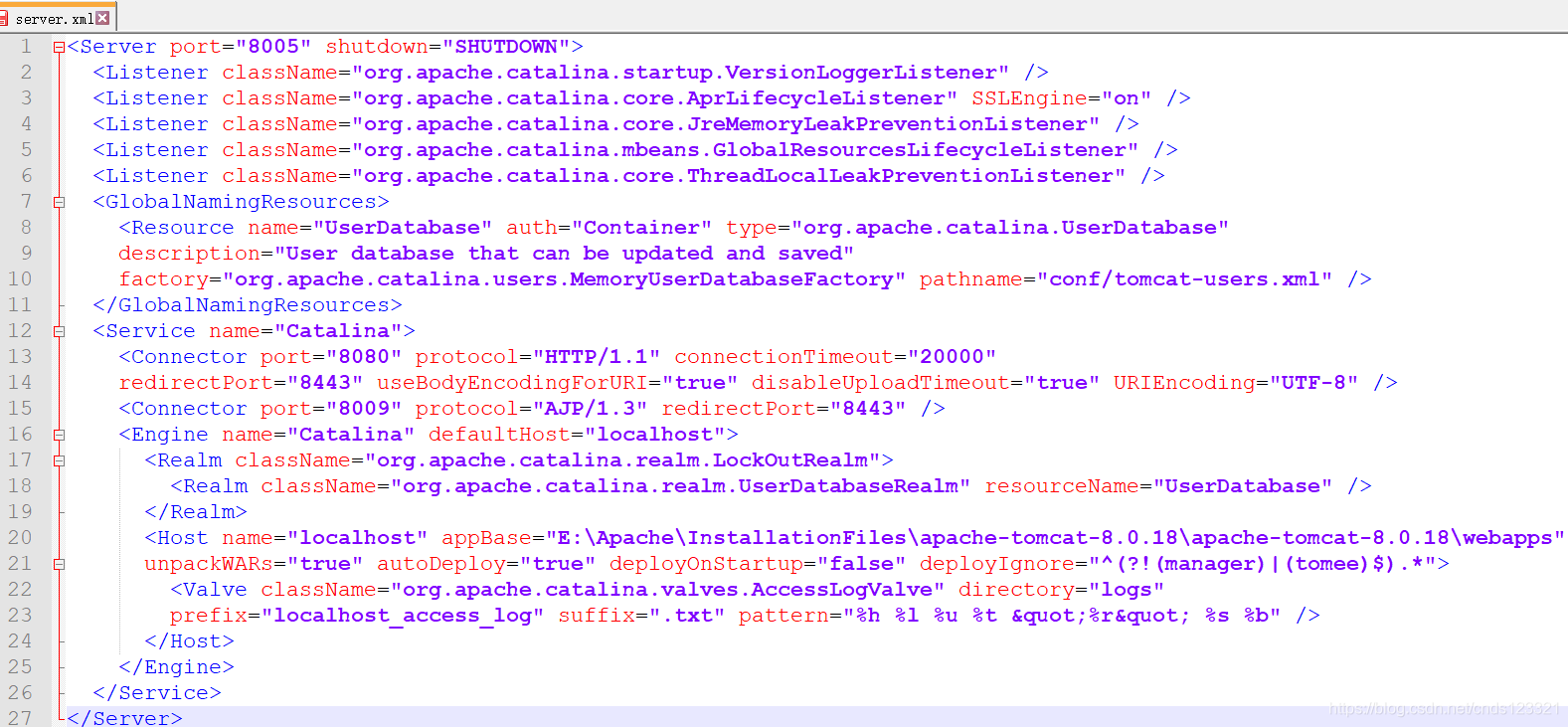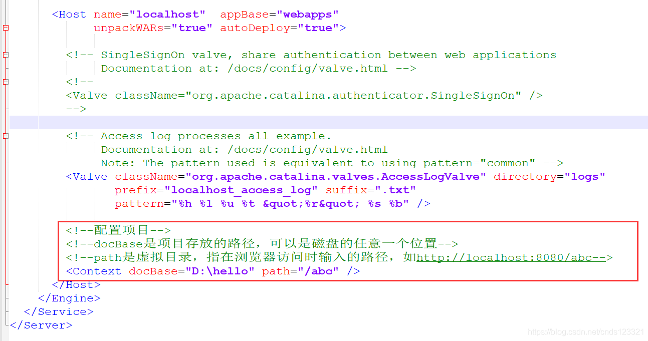 2. 配置conf/server.xml文件(这种配置很不安全,可能弄坏整个tomcat的配置)
