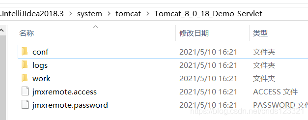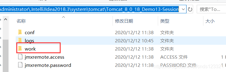 在未正常关闭tomcat前,work目录内是没有文件的,但有一些文件夹