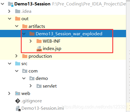 将IDEA生成的下面这个目录复制到tomcat的webapps下,并重命名demo13