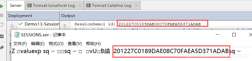 用记事本打开,尽管都是乱码,不过还是发现了保存下来的session的id