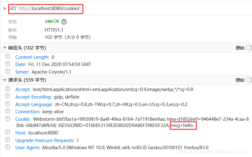 观察浏览器抓包工具该请求的请求头与IDEA控制台打印结果