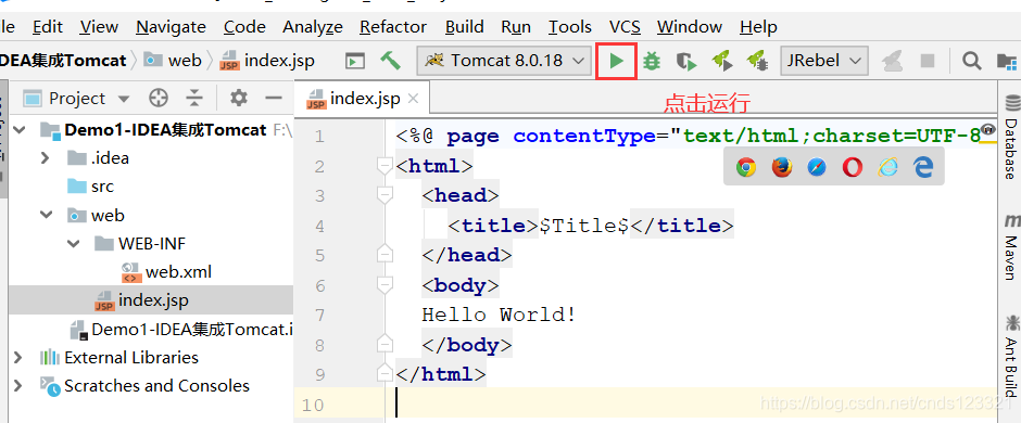点击绿色箭头运行,会自动打开浏览器