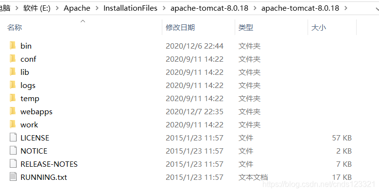 Tomcat的目录结构如下: