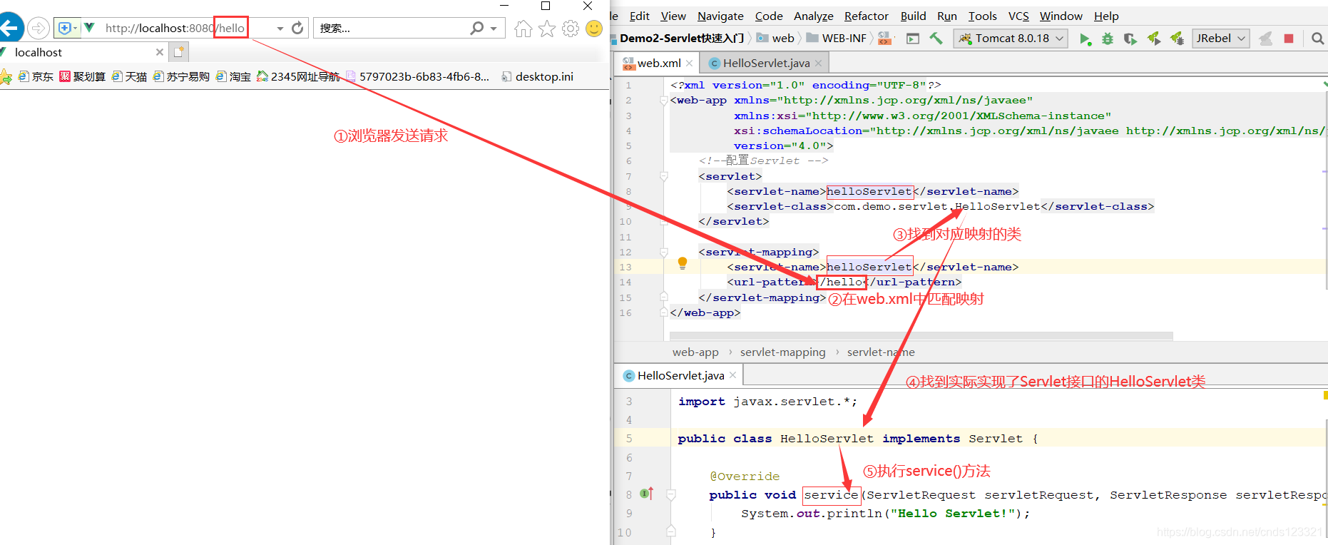 配置后,浏览器输入:http://localhost:8080/hello/才能访问