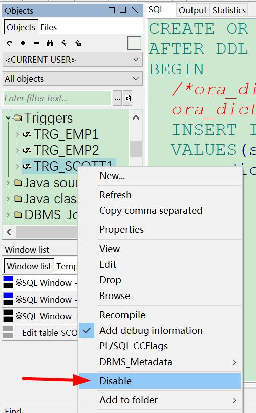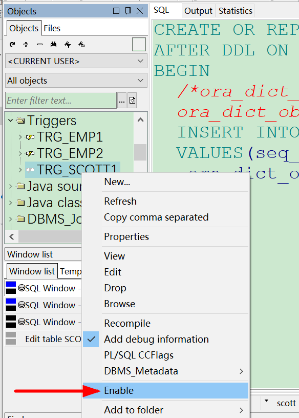 顺便说一下,对trg_scott1这个DDL触发器进行修改时不会触发DDL触发器。