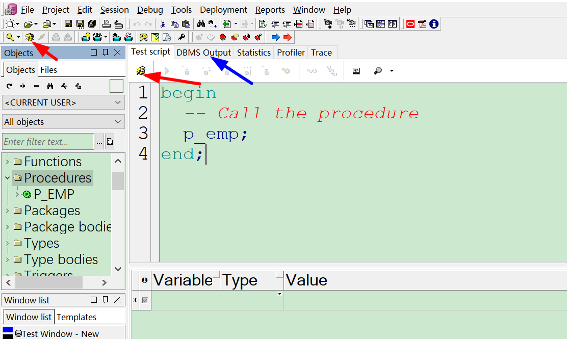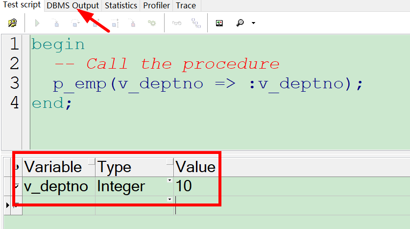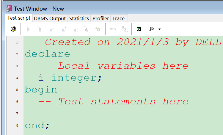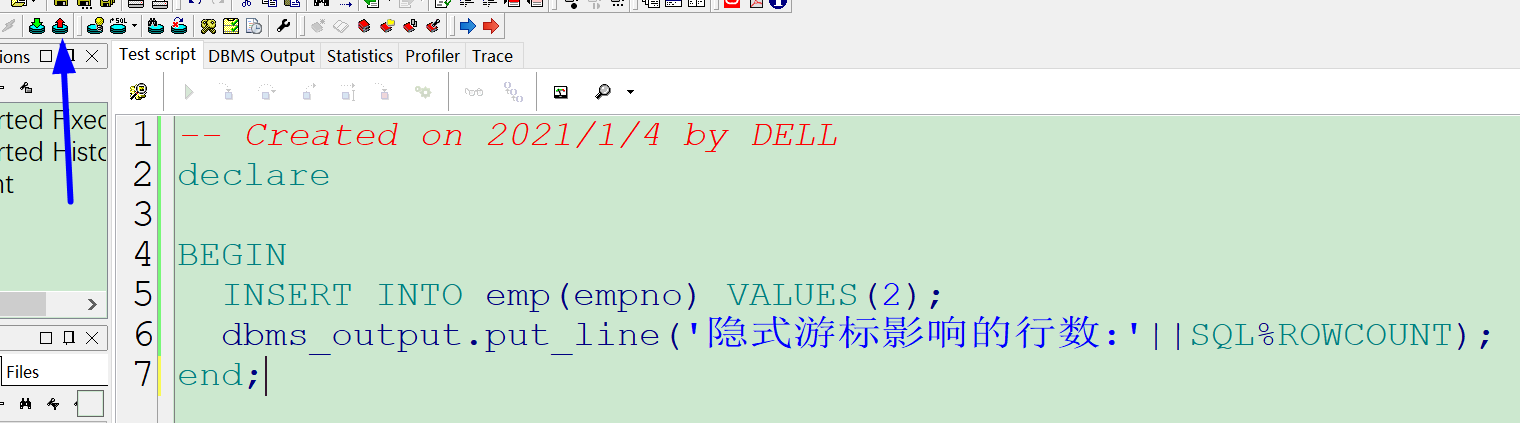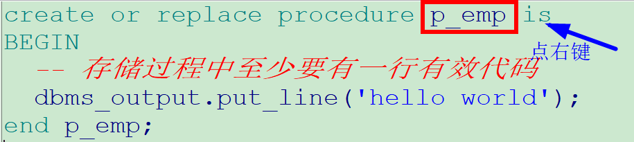 -- 因为是DBA角色登录,所以代码中的数据对象要有用户schema