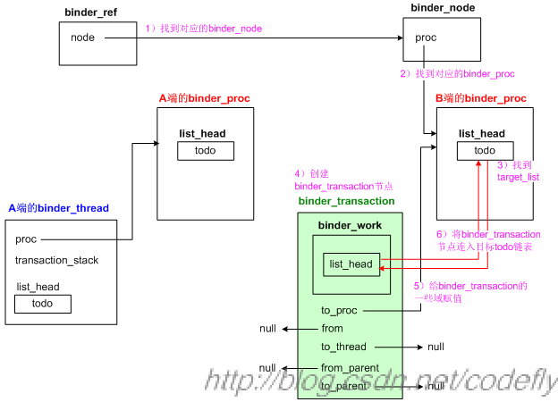 - 创建binder_transaction节点,并将其插入目标进程的todo列表;