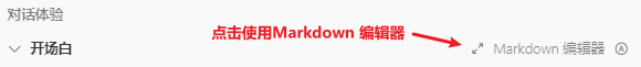在 编排页 找到开场白,点击打开Markdown编辑器: