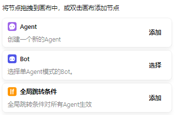 ③ 全局跳转条件 → 用户输入满足此节点的条件,立即跳转到Agent