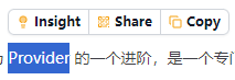 对于 **总结 **的生成结果,选中后,会自动弹出可选操作:Insight 代表基于当前关键词进行联网检索。