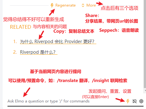 💁♂️ 以上就是 Elmo Chat插件 的全部用法,还是非常简单的,赶紧用起来吧。🤔 感觉这类总结插件的本质就是 获取网页内容,然后丢给 大模型,通过 prompts 来生成总结和概要,😆 笔者找时间学习下 Chrome插件开发,到时带着大伙搞个支持 模型切换 的插件耍耍,敬请期待~