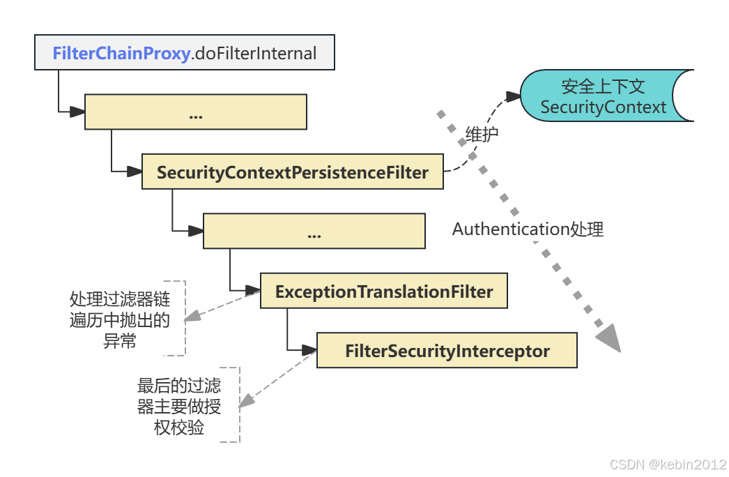 默认的过滤器链中包含15个过滤器,上图只选取了几个比较重要的过滤器展示这个流程