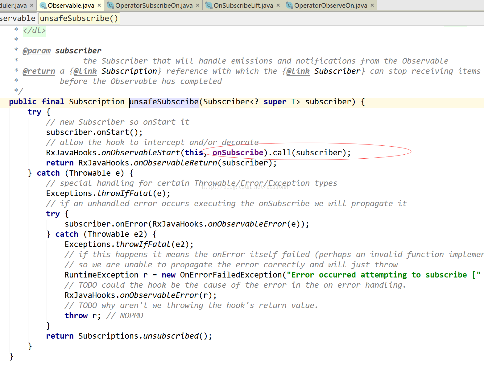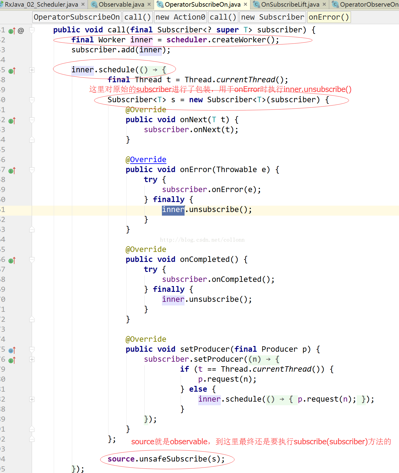 如下图,最终,还是在指定的线程中,调用了onSubscribe.call()方法。