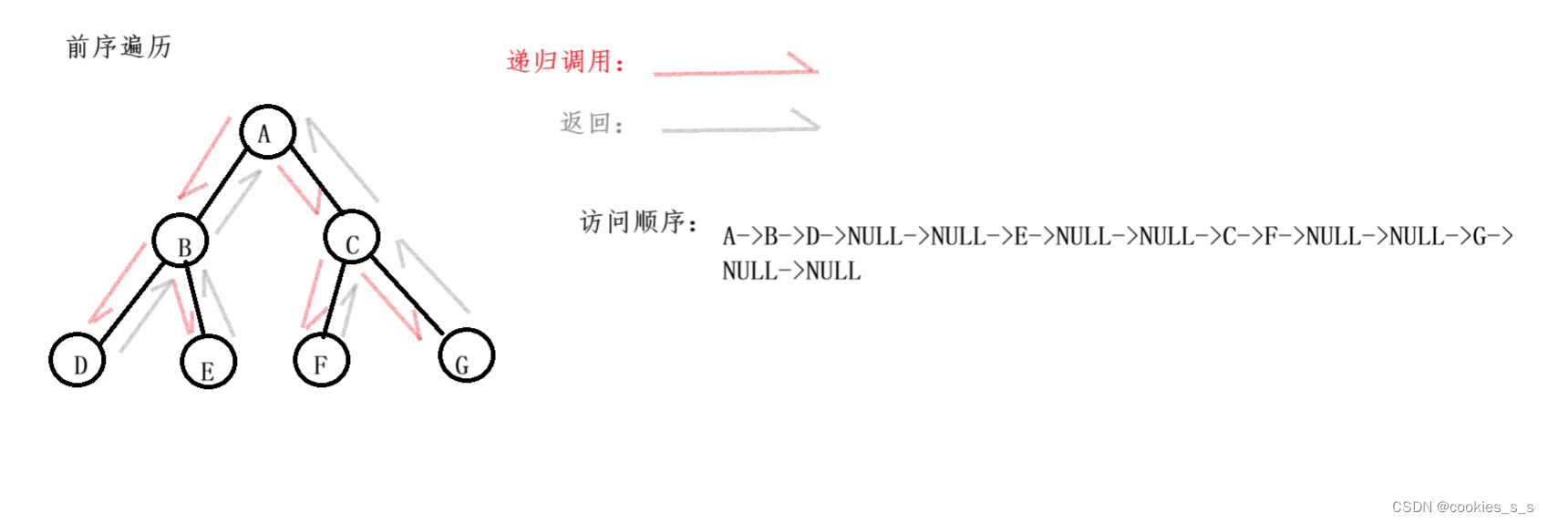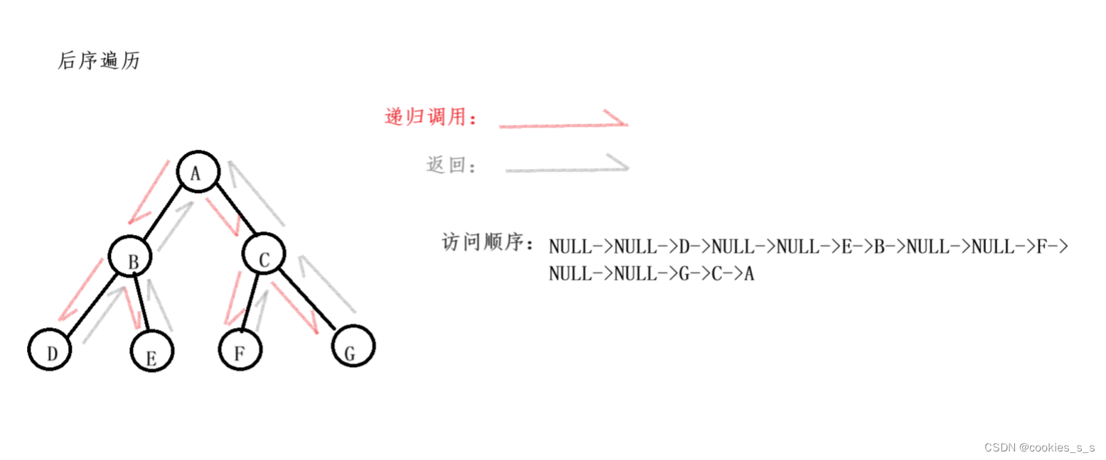 先往深度遍历,遇到子节点时再往回遍历,深度优先遍历又分为 前序遍历(NLR)、中序遍历(LNR)、后序遍历(LRN),N-根,L-根的左子树,R-根的右子树,根节点是必定访问的,所以顺序是根据根节点的访问顺序命名的。
