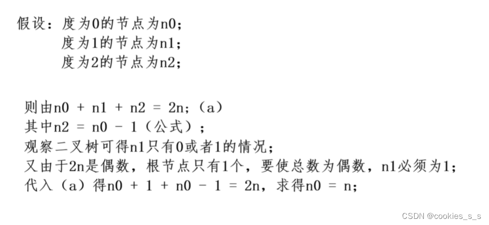 6.3对任何一棵二叉树, 如果度为0其叶结点个数为 n0, 度为2的分支结点个数为 n2,则有n0=n2 +1