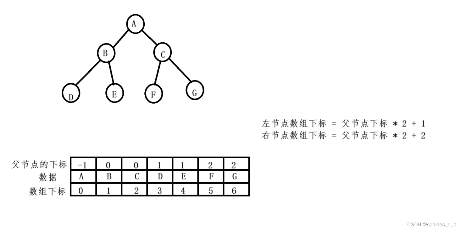 顺序存储(按照树的层次遍历顺序来存储节点)(一般用于堆排序):
