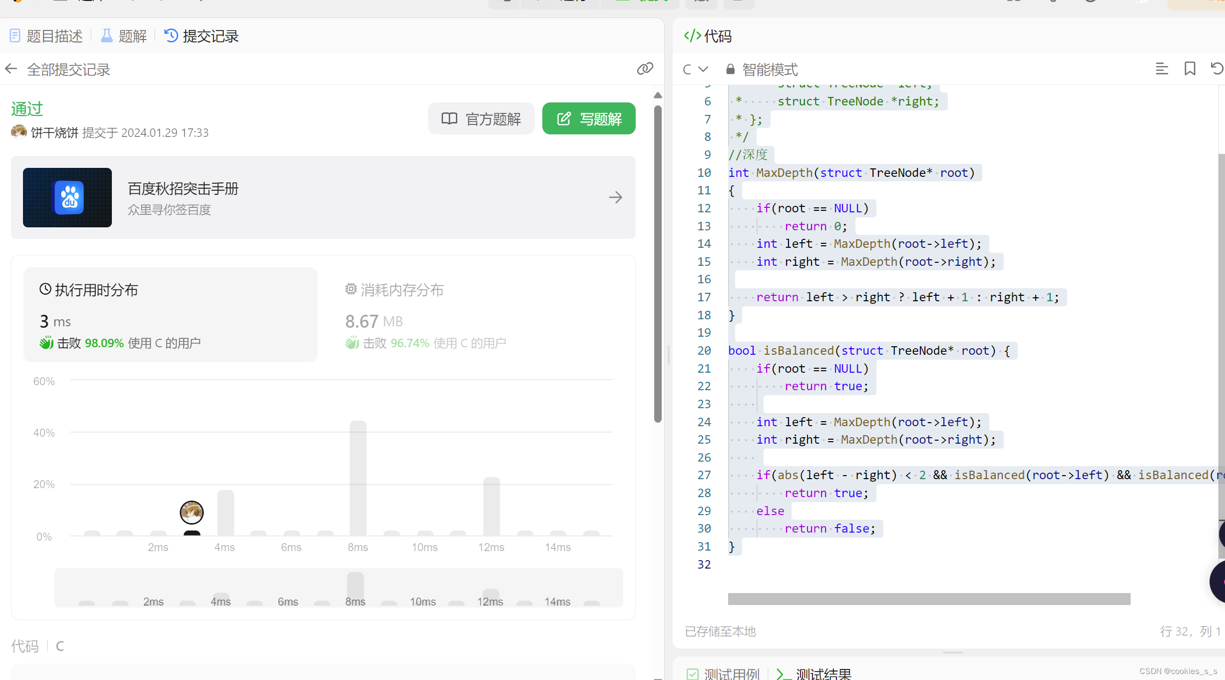 if(abs(left - right) < 2 && isBalanced(root->left) && isBalanced(root->right))//要判断子树本身是否是平衡二叉树