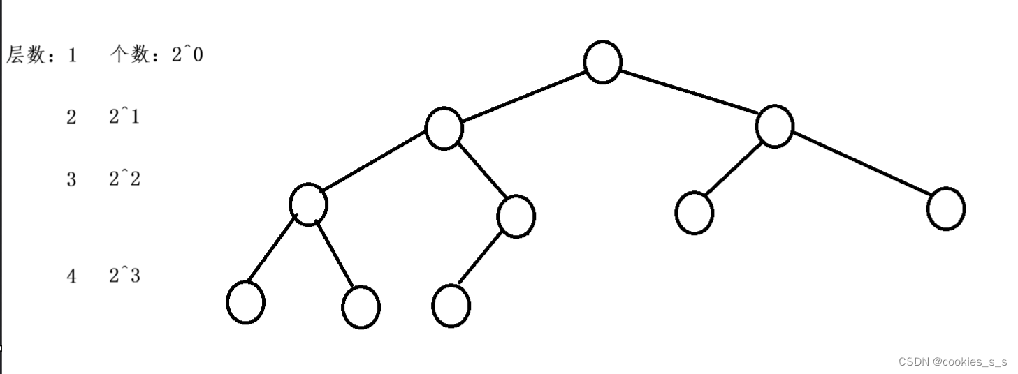 一个二叉树,如果每一个层的结点数都达到最大值(2个),则这个二叉树就是满二叉树。也就是说,如果一个二叉树的层数为K,且结点总数是(2^k) -1(计算等会讲) ,则它就是满二叉树。