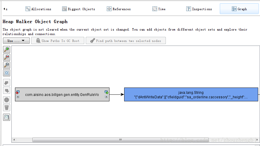 5. 找到增加迅速的对象类型,打开HeapWalker: