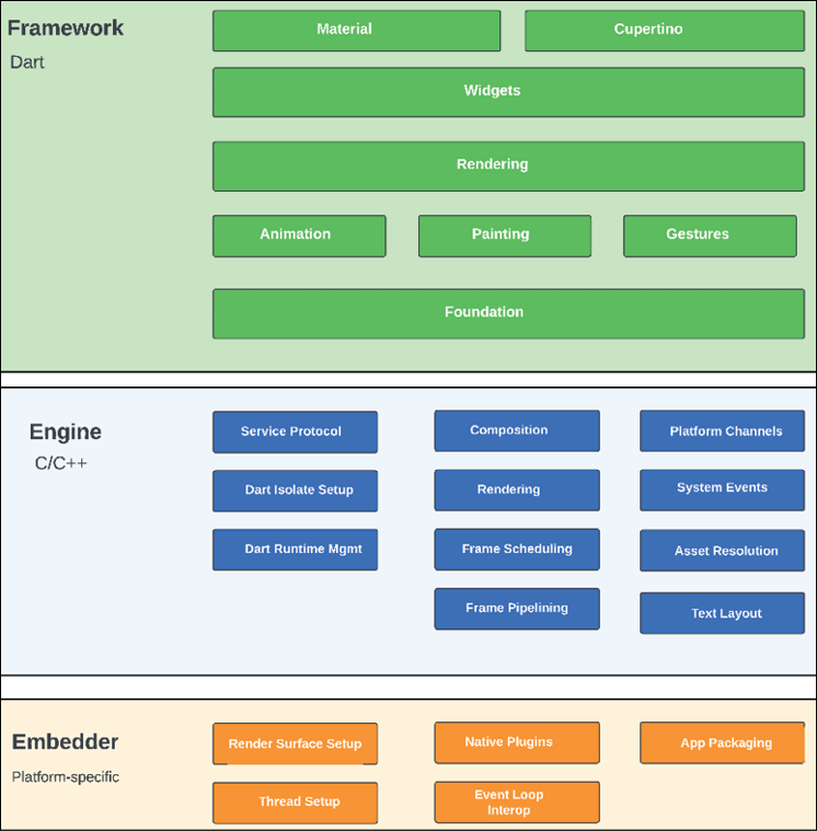 - 下图为Flutter框架,对于非计算机人士甚至计算机专业的朋友们看到了都抽象。