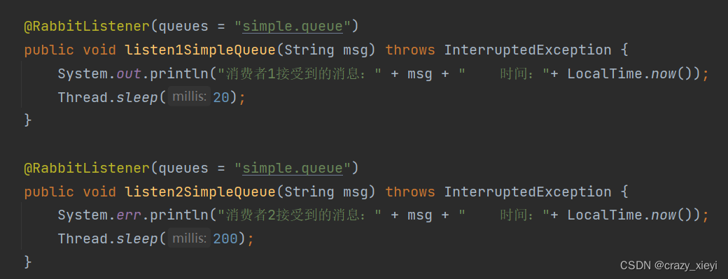 要模拟多个消费者绑定同一个队列,我们在consumer服务的方法中添加2个新的方法: