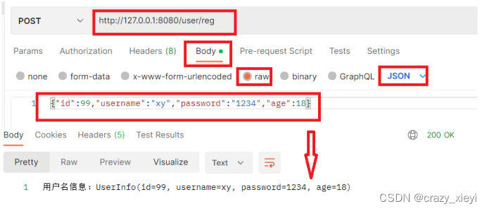使用Postman模拟发送JSON数据给服务器: