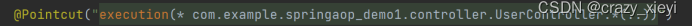execution(* com.cad.demo.User+.*(..)) :匹配该类的⼦类包括该类的所有⽅法。