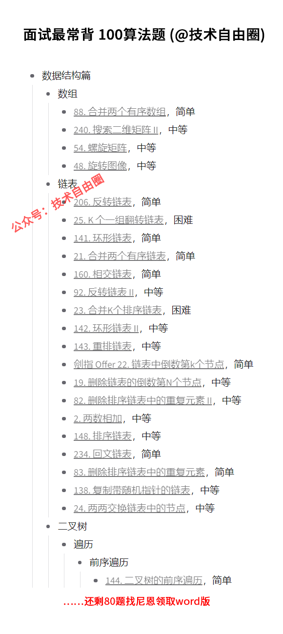 尼恩给大家备好了100道常背的算法题, 大家要一定要吃透,温故而知新, 常常看看, 不要忘了。