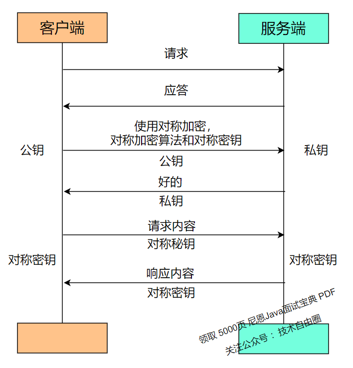 这是个非常非常经典的数据传输过程,也是Https传输协议里面最经典的部分。也是把对称加密和非对称加密的作用发挥到了很好的地方。