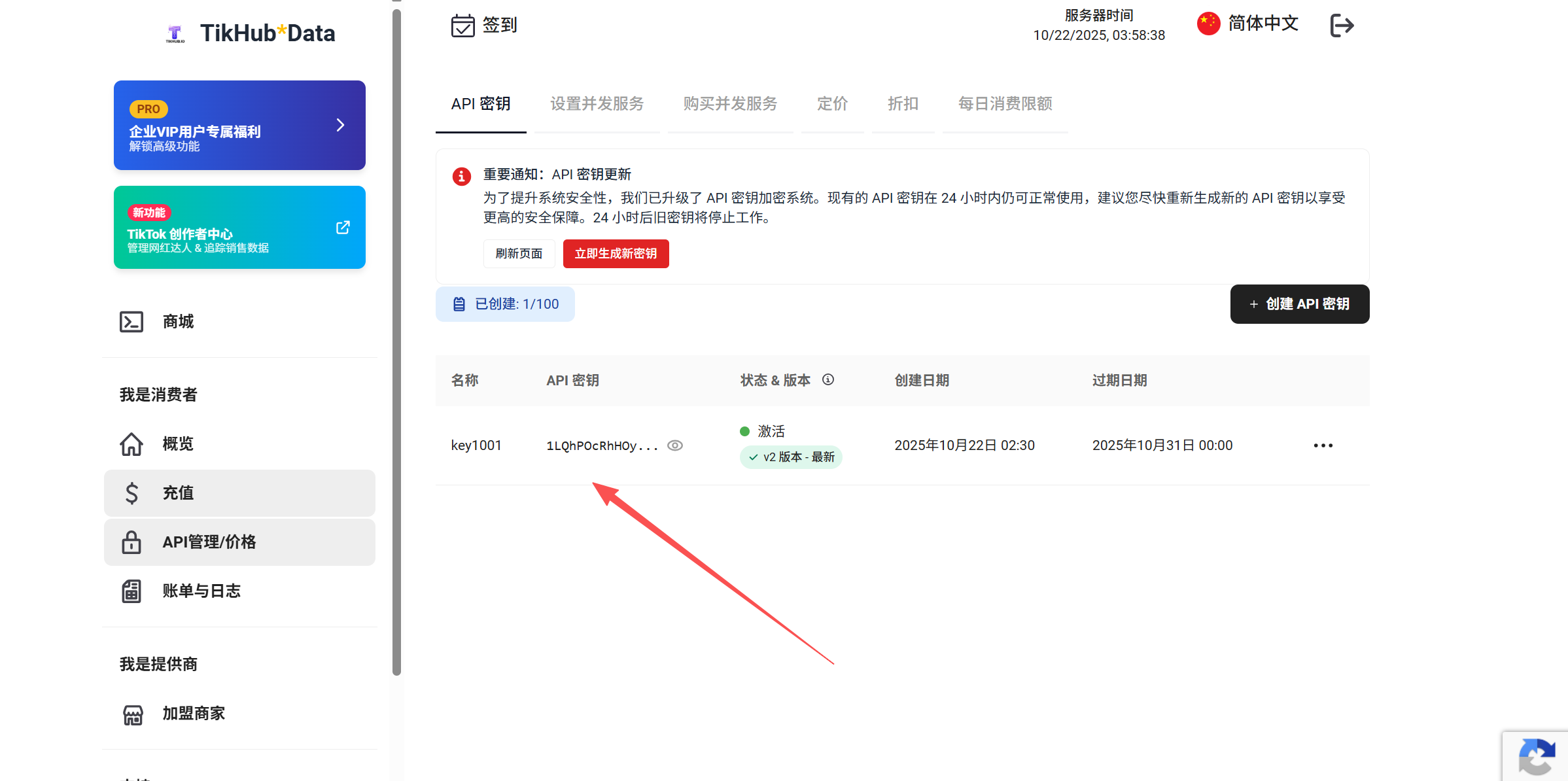 3.那我们在tikhub中创建一个账号,接下来进入他的主页,选择上方资源下的文档