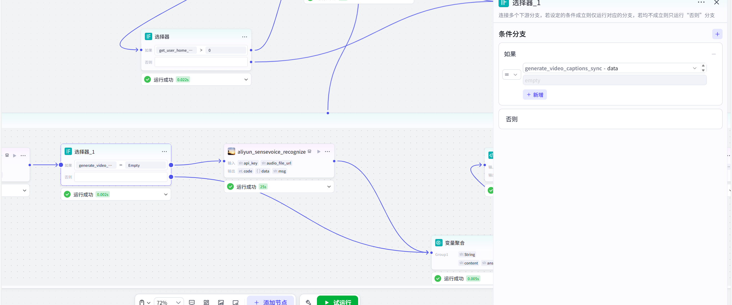 四,接下来可以在该页面优化工作流.添加通过ali生成弹幕加入多维表格。