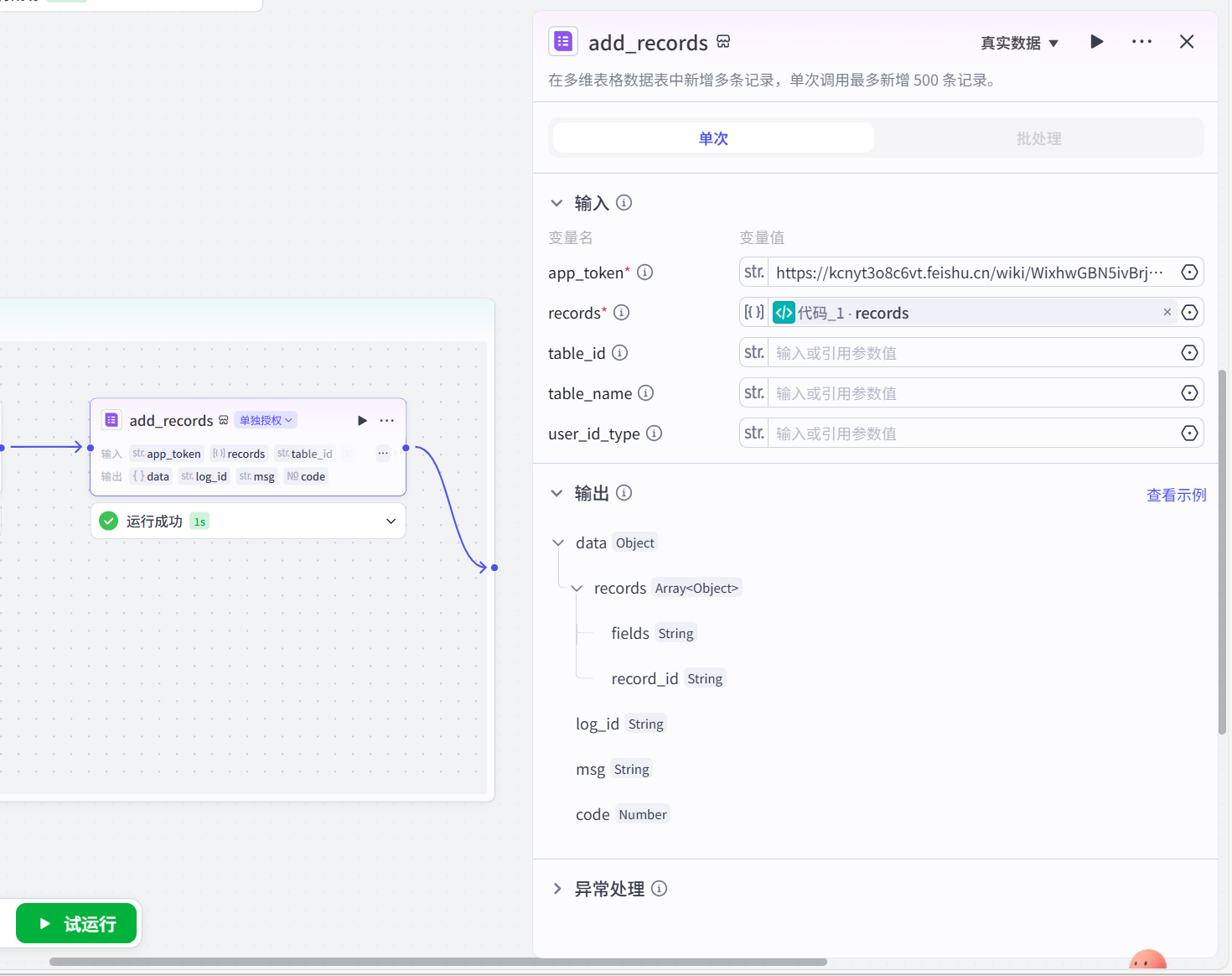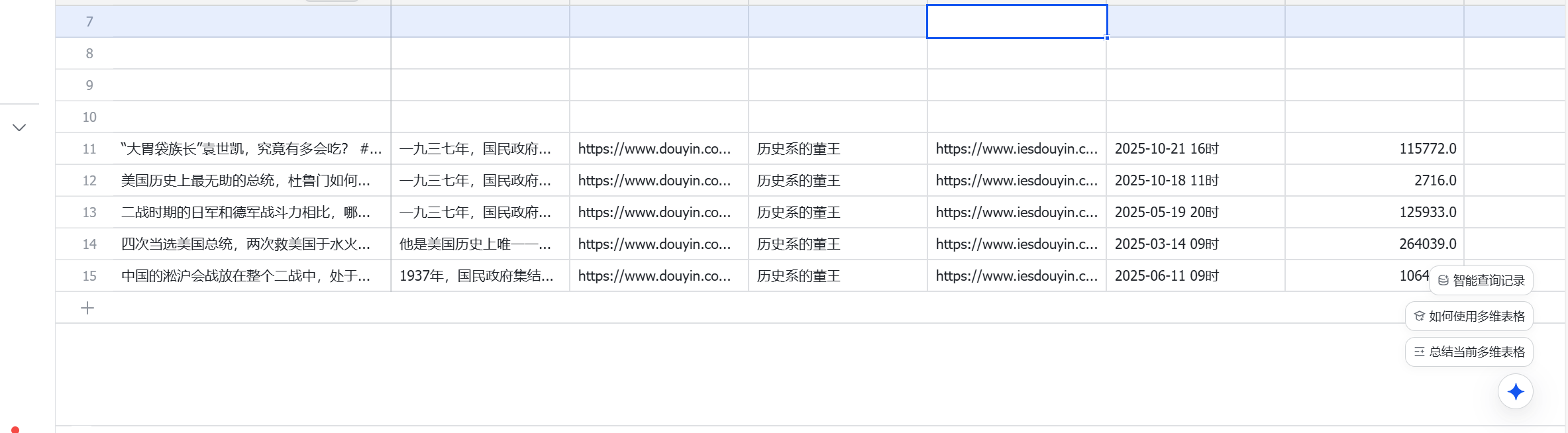 这就是我们最后写入了飞书云文档,记得将字段修改到列名上即可。