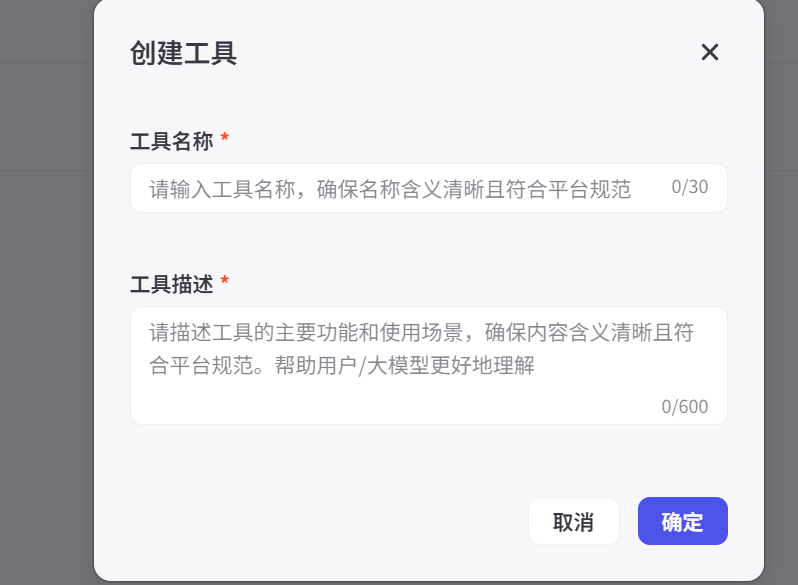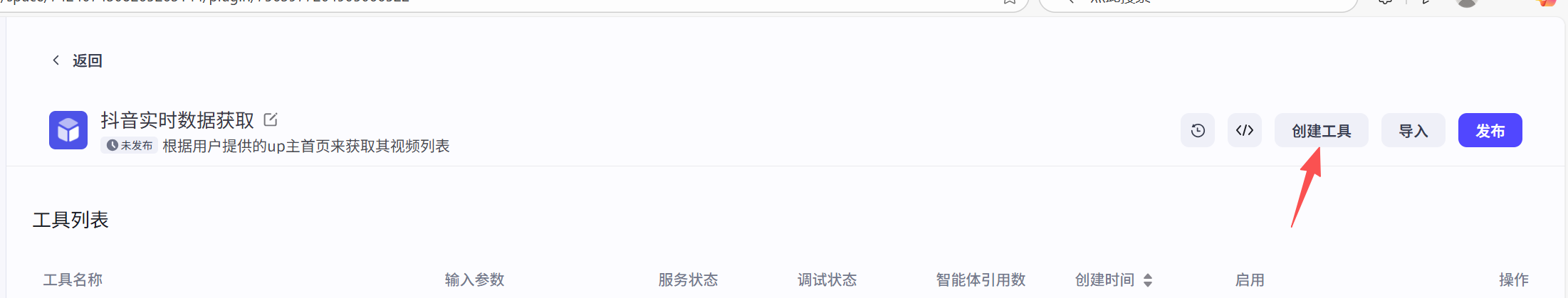 5.进入新页面后,我们首先创建一个工具,工具名称命名规则为英文和下划线。备注自行准备