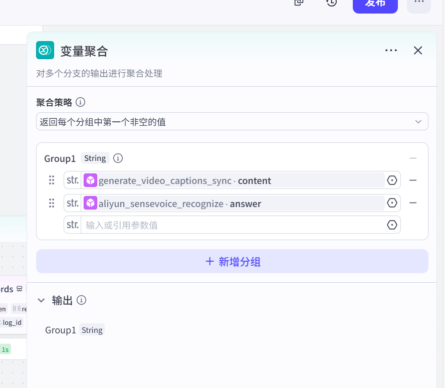 4.然后添加一个变量聚合来收集两个工具生成的字幕: