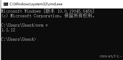 安装完成后 win +R > cmd 打开命令行 输入 nvm version 查看是否安装成功
