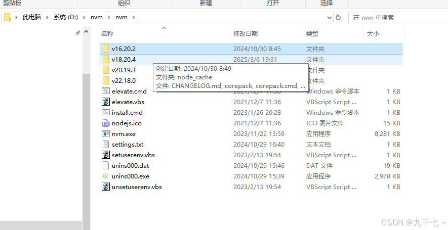 等待下载完成后 在安装目录下 D:\nvm\nvm 就会有对应下载的版本号了,下载几个就会显示几个