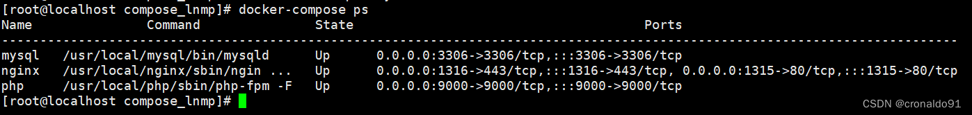 aa00c279168c compose_lnmp_nginx "/usr/local/nginx/sb…" 52 minutes ago Up 52 minutes 0.0.0.0:1315->80/tcp, :::1315->80/tcp, 0.0.0.0:1316->443/tcp, :::1316->443/tcp nginx